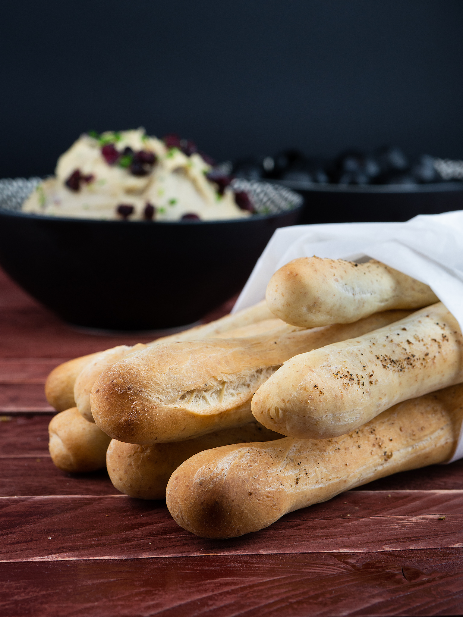 Namig: V testo lahko dodamo različne začimbe in suha zelišča (kumino, timijan, majaron, rožmarin, žajbelj, papriko v prahu, mlet poper) ali grisine pred peko posujemo s sezamom.