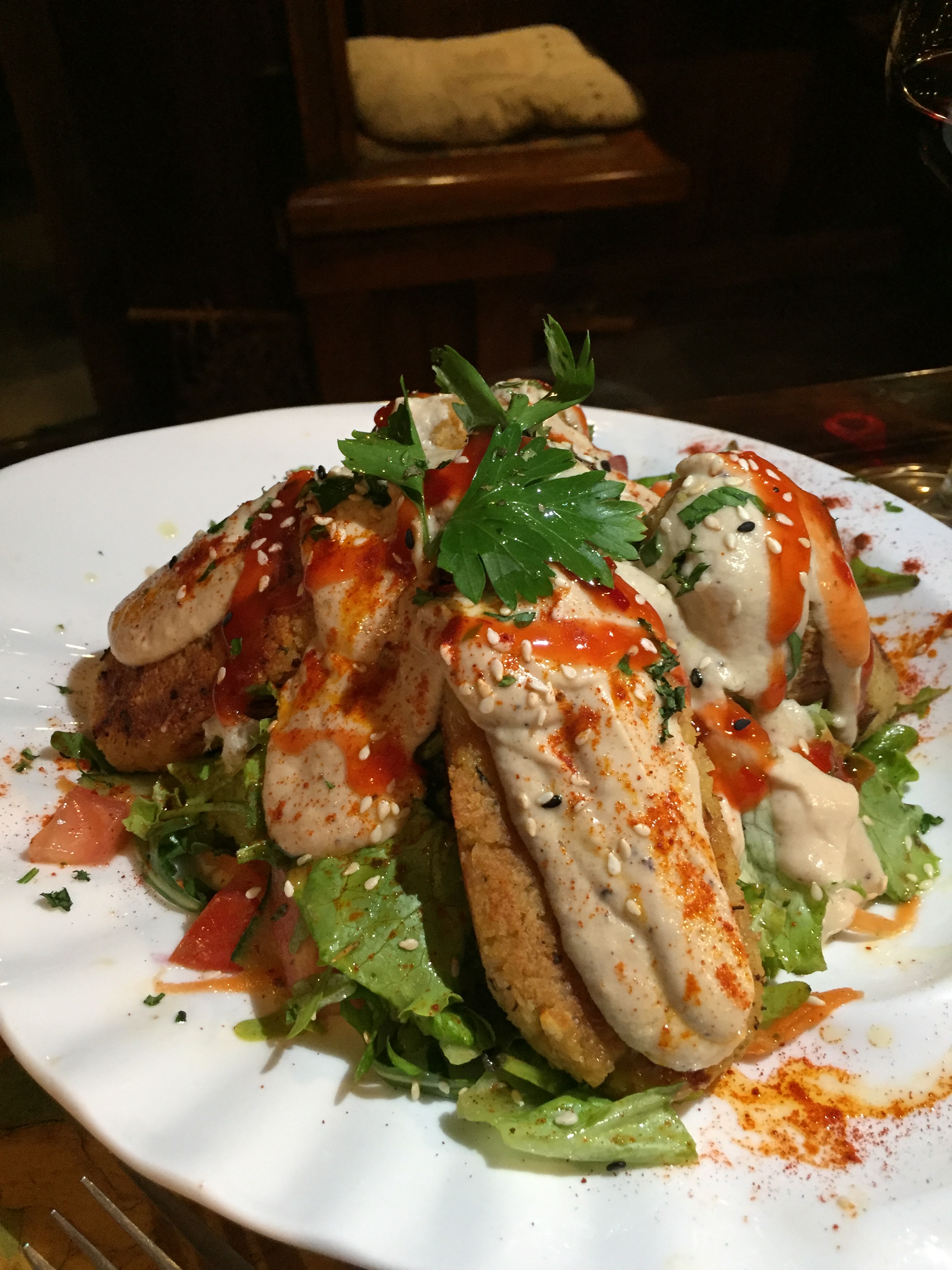 Poleg rezervacije bi vam toplo na srce položila še sledeče: za postanek v Karuzu si vzemite čas. Midva sva tam preživela kar dobri 2 uri in uživala v vsaki minuti, pila odlično bosansko vino in se predajala kulinaričnim užitkom. Iz bogatega veganskega menija sva naročila 2 glavni jedi in 2 sladici. Vsa hrana je bila neverjetno okusna in tudi porcije so bile zelo radodarne. Najbolj sva bila navdušena nad sejtanovimi zrezki (Saša pripravlja sejtan sam, iz polnozrnate moke) ter fantastično čokoladno kocko, ki se je – čeprav se to sliši nadvse klišejsko, kar stopila v ustih (njeno dno je bilo narejeno iz jabolk). Ob koncu večera sva se iz Karuza odpravila pošteno sita in z zavedanjem, da sva doživela nekaj res posebnega. Nekaj kar morava znati ceniti in nekaj, kar si bova zapomnila za vedno. Saša, hvala za to neprecenljivo izkušnjo.